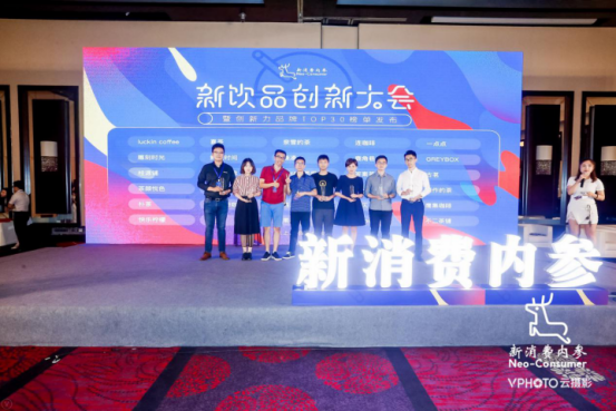 在本次大会上,消费品行业权威产业媒体新消费内参发布了《新饮品创新品牌TOP30》榜单,奈雪的茶、喜茶、luckin coffee、连咖啡等知名品牌均获上榜,有关嘉宾出席了本次颁奖大会。