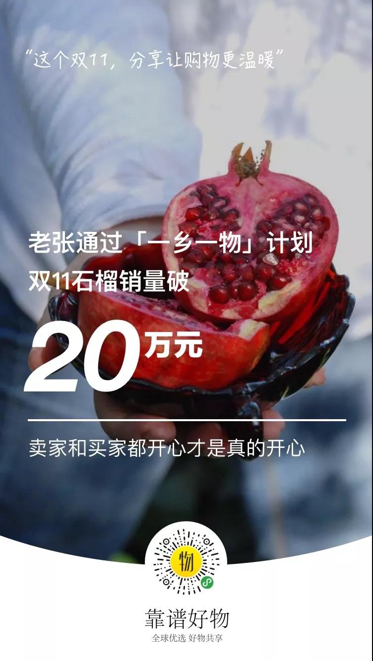 例如河南巩义市的老张,就在刚刚过去双11的活动中,通过“一乡一物“计划,石榴销量突破20万元,深刻体会到了靠谱好物所带来的温情,对于用户来说,也为能够买到具有地域特色的天然产品得到了极大的满足。而除了老张以外,靠谱好物中万千小B商家都在狂欢中深刻感受到了平台带来的温暖。