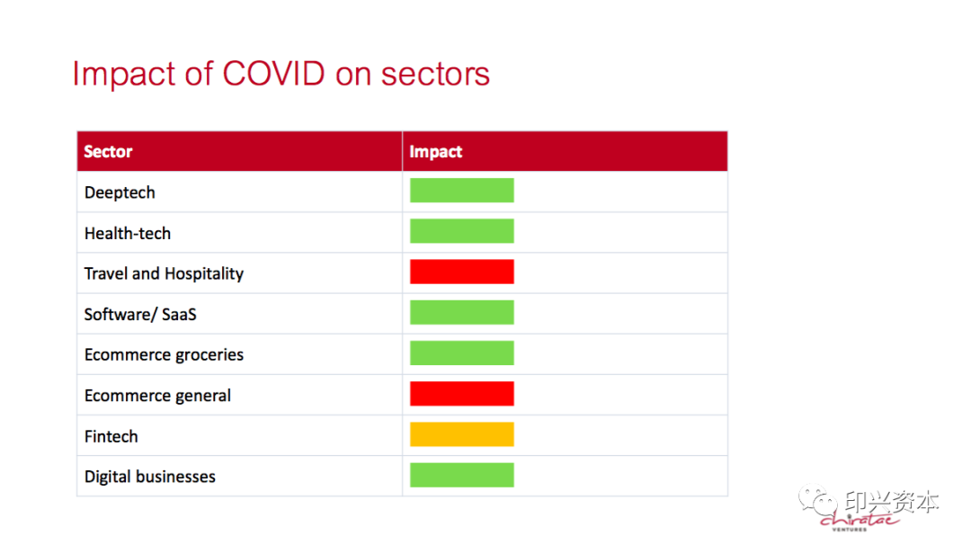 我们认为人工智能,农业科技,医疗科技,机器人,航空,生物科技,虚拟现实,软件服务,企业服务等领域都是非常值得投资的,而金融科技,供应链,智能物流受疫情影响有待观望。