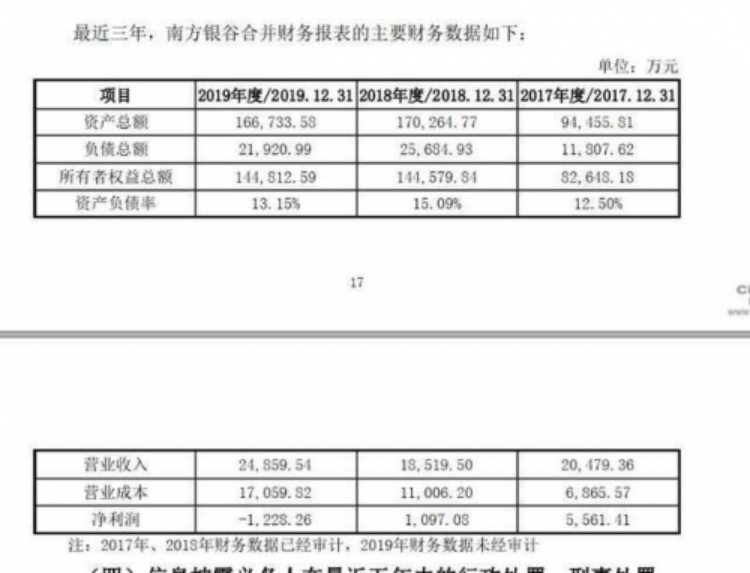 事实证明,后面南方银谷与三变科技重组失败后,南方银谷2017年和2018年实现的净利润只有5561万元、1097万元,与其当初的业绩承诺相距甚远,到2019年,南方银谷甚至净亏损超过千万。