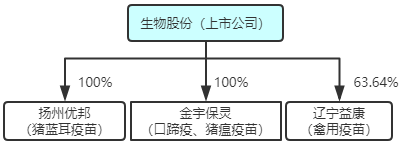 公司旗下有三家生物制药公司分别为金宇保灵、扬州优邦及辽宁益康,分别从事口蹄疫和猪瘟疫苗、猪蓝耳疫苗、禽用疫苗研发、生产与销售。