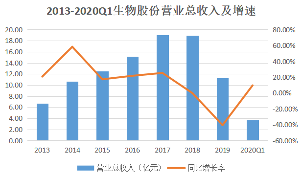 但在2020年第一季度,生物股份的业绩出现拐点。