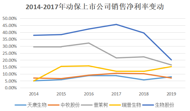 2018和2019年可比上市公司销售净利率变动幅度较小,是因为营收结构不同,如2019年,中牧股份29%的营收是贸易,生物制品只占营收的28%;而生物股份的96%营收来自于生物制药。