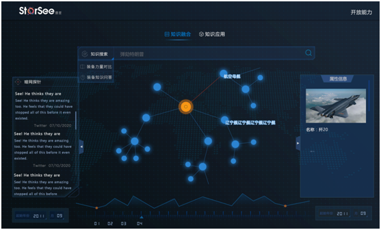 “我们构建了包括12大类30小类100万实体的防务知识图谱,涵盖200余种防务实体类型、130余种防务事件类型、10万余军事装备实体数据,数据来源覆盖88个国家、7个语种、6个战场空间。”摄星智能VP张亚琦说到。
