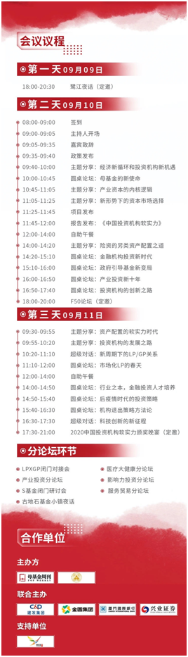 作为峰会的重要组成部分,“F50论坛”将于9月10日晚上举行。来自社保基金、政府引导基金、银行资管、保险资管、券商资管、市场化母基金、产业投资机构、家族财富等约50位代表将参加闭门会议。