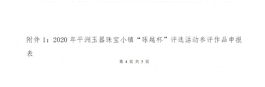 2020年平洲玉器珠宝小镇“琢越杯”作为“天工奖”评选的初选窗口之一,将由“琢越杯”组委会与中国珠宝玉石首饰行业协会共同负责本次申报“天工奖”作品入围的评选组织工作。作品初评选拔由中宝协指定评委按照“天工奖”的评选标准进行,不与其它评选活动结果直接关联。入围“天工奖”初评的作品将统一送交北京参加11月“天工奖”终评。