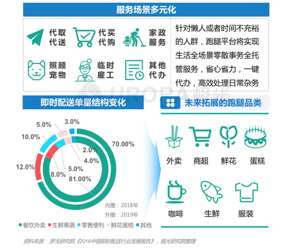 使用场景多元化和新零售趋势下的同城生鲜零售配送的崛起,将带动跑腿行业新一轮的增长。