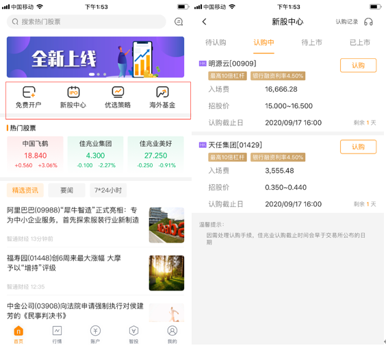 该版本自主研发的账户体系,进一步优化升级了港股交易打新体验,增加了电子暗盘交易等功能。
