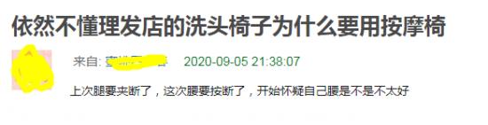 “上周去剪头,突然发现理发店洗头的躺椅变成了按摩椅,还蛮新奇的。”一位同事聊到他“按摩椅”突兀的使用场景,却意外的不排斥。在网上,2019年陆续就出现一些帖子和提问比如“理发店洗头用按摩椅这个主意到底谁想出来?”