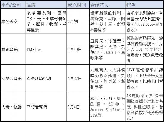 TME live依靠腾讯平台本身的流量,吸引不少知名艺人合作。三月以来,已成功举办刘若英、陈奕迅、五月天、张韶涵、徐佳莹等艺人的线上演唱会,观看人数多超过千万。