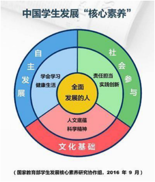 2016年《中国学生发展核心素养》总体框架,由三个方面、六个要素和十八个基本点构成,明确了“21世纪应该培养学生什么样的品格与能力”,其核心是培养全面发展的人。