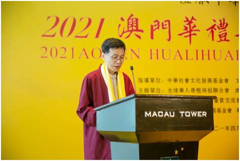 论坛组委会主任、全球寻根拜祖联合会副会长司马众志在致辞中介绍说:长期以来,全球华人寻根拜祖联合会在国家华夏文化纽带工程组委会、中华社会文化发展基金会的支持下,围绕根亲文化为主题,组织、开展了一系列的全球行文化交流活动,在海内外具有较大的影响力。今天在澳门借助举行共拜轩辕黄帝大典,举办华礼华服国际论坛,主要目的是支持共青团中央倡导的“中国华服日”,引导中华礼仪,中国服饰走向世界。