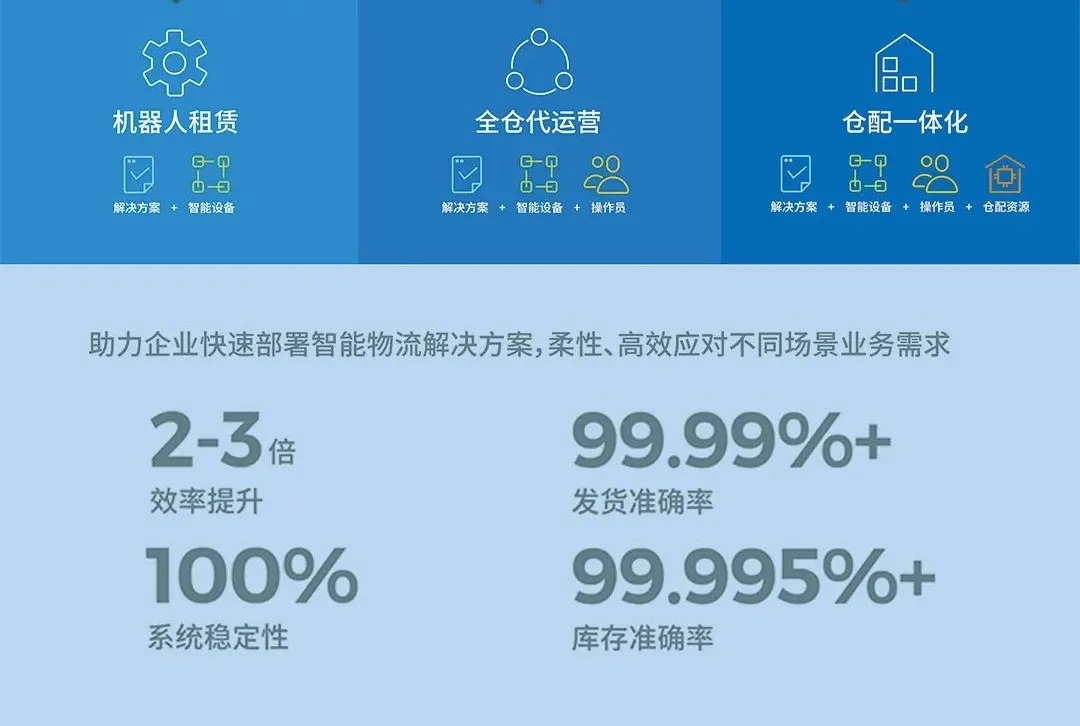 极智嘉于2018年在业界首次提出的机器人即服务(Robot-as-a-Service, RaaS)灵活创新商业合作模式。它让企业不仅可采购,还可选择机器人租赁、全仓代运营和仓配一体化智能仓服务,降低企业部署机器人系统的资金和能力门槛,助力更加快速实现供应链升级改造。