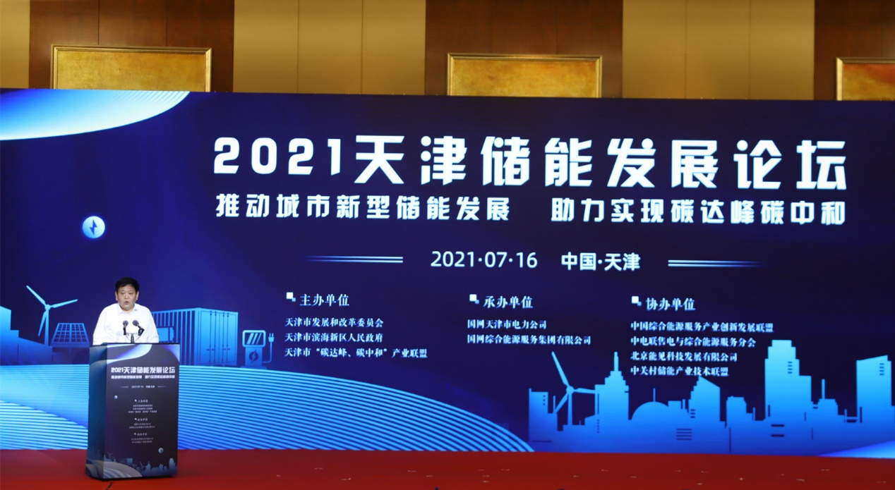 7月16日,以“推动城市新型储能发展,助力实现碳达峰碳中和”为主题的2021天津储能发展论坛在天津成功举办。论坛由天津市发展和改革委员会、天津市滨海新区人民政府、天津市“碳达峰、碳中和”产业联盟主办,由国网天津市电力公司、国网综合能源服务集团有限公司承办,由中国综合能源服务产业创新发展联盟、中电联售电与综合能源服务分会、北京能见科技发展有限公司、中关村储能产业技术联盟协办。来自政府、科研院所、电网企业、储能企业、新能源企业的300余名参会嘉宾齐聚一堂,围绕储能产业进行深入探讨,为促进行业的健康快速发展建言献策、凝聚智慧。