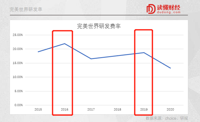 (2016年、2019年完美世界研发期,研发费率在游戏周期中处于高点。)
