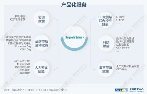 Sequoia Value +(红杉价值共创解决方案)是红杉中国经过长期探索和不断优化而逐渐建立的有效、泛用的增值服务体系,包括初创赋能、品牌市场与活动赋能、人力资本赋能、科技赋能、资本市场赋能、LP赋能与联合投资赋能六大模块,覆盖多个职能,致力于帮助不同阶段的企业提高核心竞争力、推动产业创新、建设良好创新创业生态圈。随着环境和企业需求的变化,Sequoia Value+体系还在不断丰富和完善。