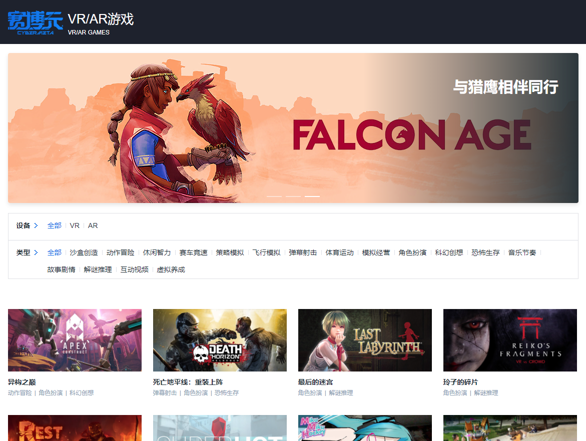 游戏热爱者可以在VR/AR游戏栏目寻找心仪的佳作,查阅相应的游戏类型、支持语言、支持设备等信息。这些来自主流平台的聚合内容,将成为玩家沉浸式体验的重要参考。