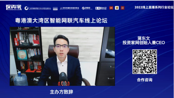 2022年4月21日,由投资家网和广州市智能网联汽车示范运营中心联合主办的“2022线上直播系列行业论坛·粤港澳大湾区智能网联汽车线上论坛”如期举办。