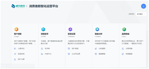 此外,在营销后端数据应用方面,卓尔数科深入洞察数字营销实际场景需求,自主研发了完善的营销科技产品矩阵,以「消费者数智化运营平台」为基础,帮助企业构建数字资产沉淀阵地。同时,以「微智助手」SCRM 、「Z-shop」电商小程序等营销工具作为抓手,打通「公域-私域-公域」数据链条闭环,进一步整合全域数据分析能力,展现360°客群动态画像,实现高效+精准+智能的自动化营销,驱动全渠道全场景全链路私域运营。