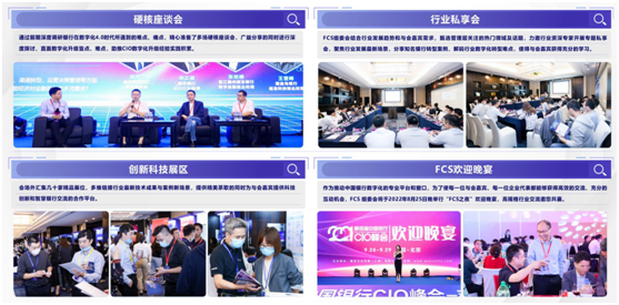 FCS 2021第四届中国银行CIO峰会现场汇集了400+国内外银行业以及知名信息化技术解决方案服务商等众多最具远见和影响力的高层领导者。3场主论坛+2场分论坛+1场圆桌讨论+1场私享会,集结了各头部企业大咖,围绕数字化转型、大数据+银行、AI+银行、智能风控、信息安全、数字化运营和 IT价值转型等诸多话题展开分享。