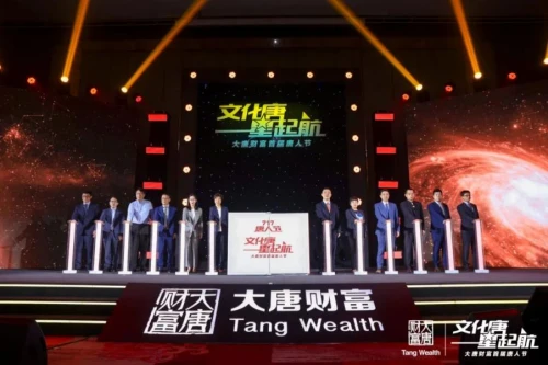 大唐财富董事长张冠宇致辞结束后,企业文化领导小组全体登台,共同开启唐人节。伴随着能量柱的缓缓升起,大唐财富文化辞典徐徐打开。文化唐星启航,大唐群星闪耀,为财富保驾护航。