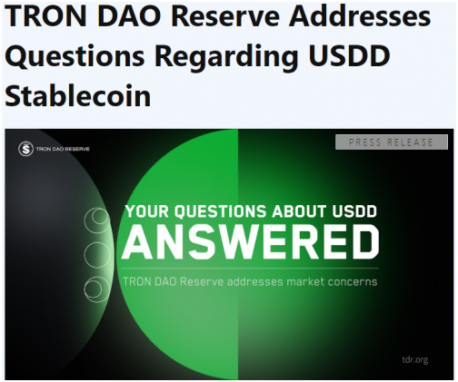 近日,波场联合储备(TRON DAO Reserve)的官方推特发表公开信,针对市场对USDD的提问...