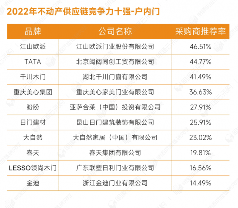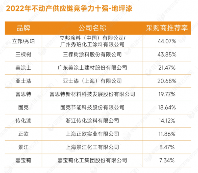 包含:防水材料、保温材料、建筑涂料(真石漆、多彩仿石漆、无机涂料、反射隔热涂料)、地坪漆入户门、防火门、门窗五金类、幕墙类、系统门窗类、铝型材类、石材类等11个榜单。