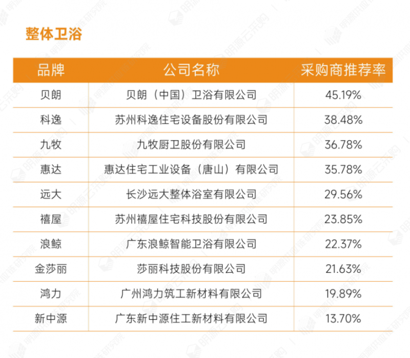 包含:户内门、照明灯具、厨房电器(集成灶)、木地板、陶瓷砖(岩板)、智能锁、卫浴洁具类(民族品牌)、热水器、太阳能热水器类、空气能热水器类、吊顶材料、卫浴五金(厨房水槽、整体卫浴)、橱柜类、全屋定制家具、淋浴房、墙纸类、建筑密封胶类、智能家居(电动窗帘)、瓷砖胶等19个榜单。
