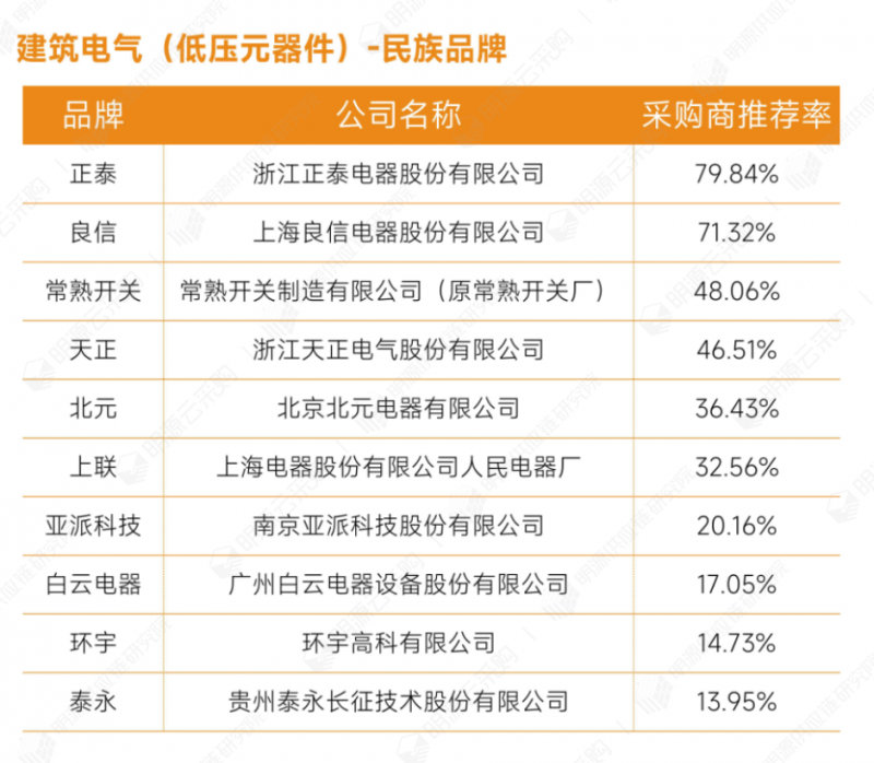 包含:建筑电气(低压元器件)、开关插座、电线电缆、管件管材类(钢管)等4个榜单。