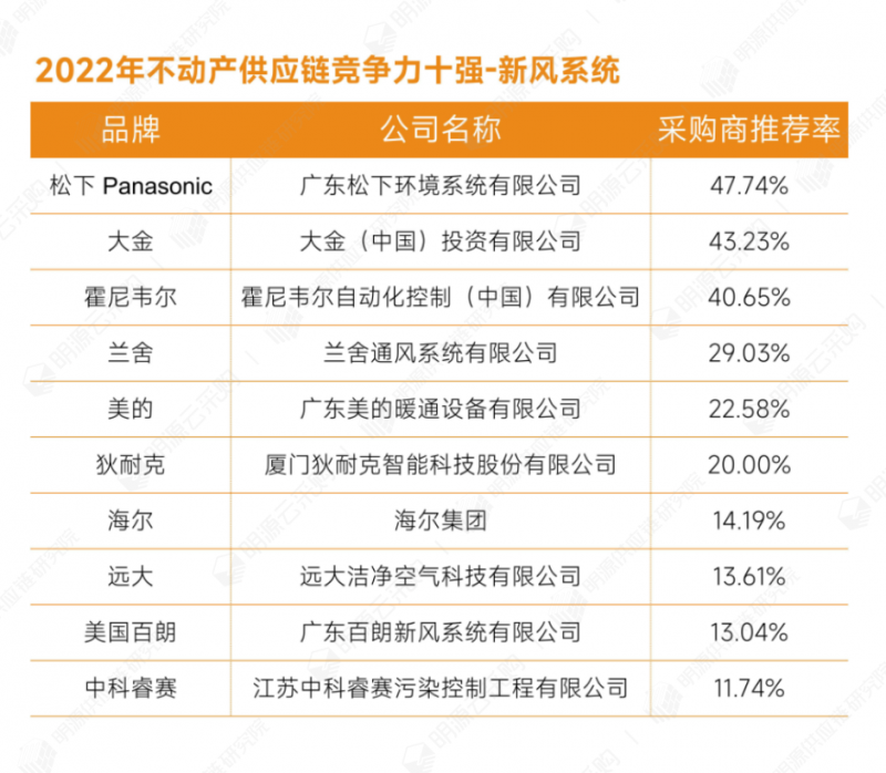 包含:空调、新风系统、泵类、阀门类、消防报警系统等5个榜单。