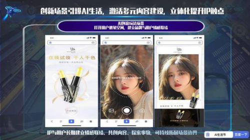 【AI美学】专场是百度营销联合传奇今生唇膏推出的AI全智能试妆版块,打造千人千面唇色试色体验。用户在上传自己的照片后,系统匹配最完美的唇色,可以一秒找到自己最适合的唇色。试色完成后,用户还可生成个人海报,在社交渠道分享,使品牌在趣味化体验中得到二次传播。对于触达用户来说,在惊喜感和趣味体验的双料冲击之下,能够有效提升对传奇今生唇膏品牌的认知和粘性,预埋下购买动机。快速拉近用户与传奇今生唇膏的距离实现种草,更是用满满的黑科技体验感满足年轻人更高的消费要求,解决即使是线上也能挑选出合适色号的痛点难题,加速购买决策。