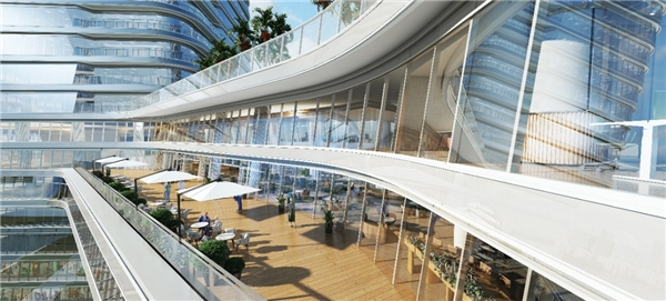粤港澳大湾区建设是新时代国家改革开放下的重大发展战略,目的在于深化粤港澳合作,充分发挥三地综合优势,促成区内的深度融合,推动区域经济协同发展。南沙明珠湾是“广州资管走廊”的重要节点,将成为未来大湾区的焦点所在。南沙IFC充分发挥所在区域明珠湾的区位优势,把握粤港澳大湾区意义内涵,在A、B两栋主塔楼之间打造了百米悬空“空中连廊”,以创新的圈层交流复合空间,赋能大湾区高质量发展。“空中连廊”将成为兼具空中图书馆、咖啡厅、休闲会客厅等多元复合功能,创新商办体验的物理空间,为客户提供多元化商务场景。同时,这里也将成为汇集多重优质资源,链接政府、产业、企业、港澳要素及商务社交,以及考察南沙规划发展的重点价值区位,承接政企产业活动,汇聚湾区资源商机,助力企业连接港澳、走向世界。