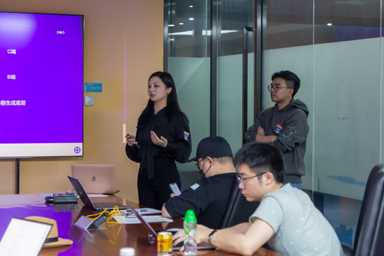 组队完毕后,40多位参赛者组成13支团队。大家开始正式Hackathon,分组进行产品创意的头脑风暴、demo制作、商业计划书打磨,最终呈现出“AIGC+AR眼镜”、“AIGC+编辑”、“AIGC+社交”、“AIGC+开发者工具”等13个优秀项目,并有多支团队在当天编程完成了产品demo。
