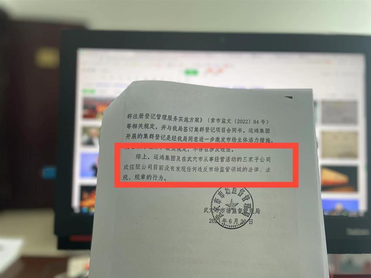 李玉保称,现在网上舆论对公司影响大,他们已多方寻求支持。同时,其公司注册地的湖北省武穴市市场监督管理局已在事发后第一时间到企业排查风险。6月30日,武穴市市场监督管理局在《关于对运鸿集团股份有限公司开展风险排查工作的回告》中明确回复:运鸿集团及在武穴市从事经营活动的三家子公司或控股公司,目前未发现任何违反市场监管领域的法律、法规、规章的行为。