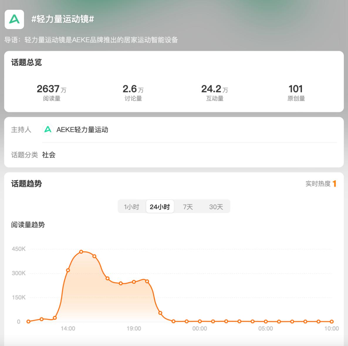 AEKE及其新品轻力量运动镜A1自发布以来,备受商业、运动健康和科技数码等多个行业的高度关注,得到了数百家媒体的积极报道,包括中国新闻周刊、中国青年网、ZAKER财经、亿邦动力、艾瑞网、中国体育新闻网等。AEKE在新浪微博发布的品牌官方话题#轻力量运动镜#阅读量已超过2600万,吸引了众多用户的关注与热议。