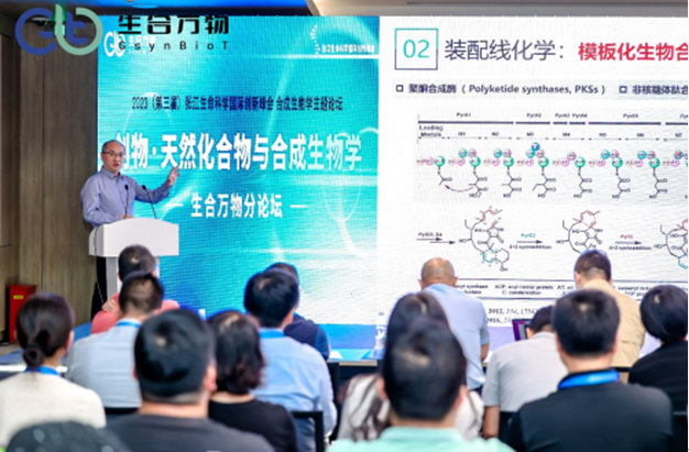 上海交通大学特聘教授刘天罡发表《萜类化合物的高效合成与创新发现》主题演讲,围绕如何结合高效微生物底盘、自动化平台、基因组大数据及人工智能提高天然产物发现概率作分享。