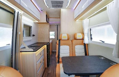 整车内部更是尽显精致与品味,柔和简约内饰,让人置身野外,也能感受家的温馨。舒适柔软的后部双人床+前方额头床,能够完美满足四个成年人的休息需求。厨房设备一应俱全,烹煮随意,外加休闲区配备多人卡座、可升降桌台、JBL扬声器及智能网络电视等,可带来“美食+娱乐”叠加的旅行趣味。