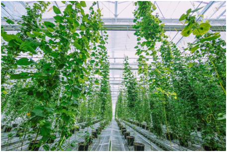 图为位于上海市金山区的百威亚太室内啤酒花农场。(受访者供图)
