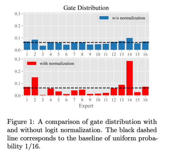 我们在 Gating Layer 的 token 分发逻辑处新增了一个 normalization 操作,使得 Gating Layer 的参数学习更加趋向于被选中的 top-2 experts,增加 MoE 模型对于 top-2 的置信度:
