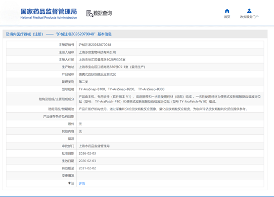 近日,上海添音生物科技有限公司自主研发的便携式皮肤烟酸反应测试仪获得第二类医疗器械注册证(沪械注准2...