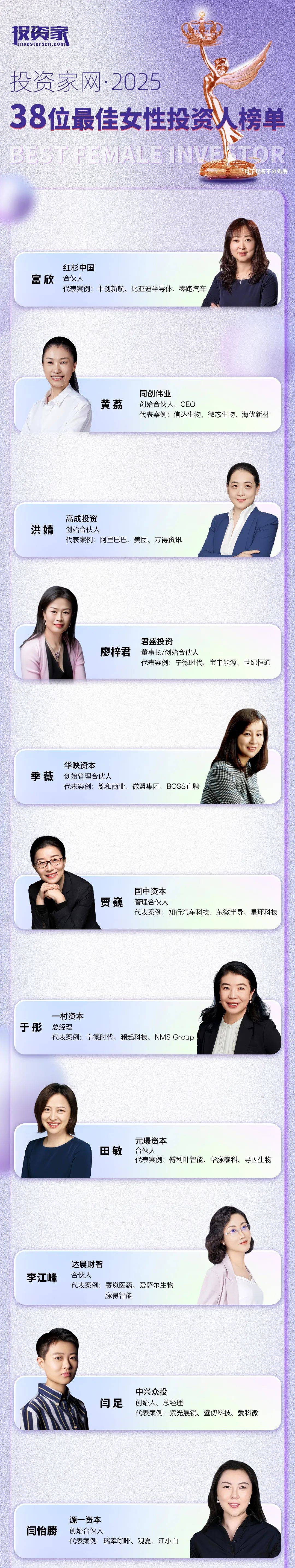 以下为“ 投资家网2025·38位最佳女性投资人榜单”: