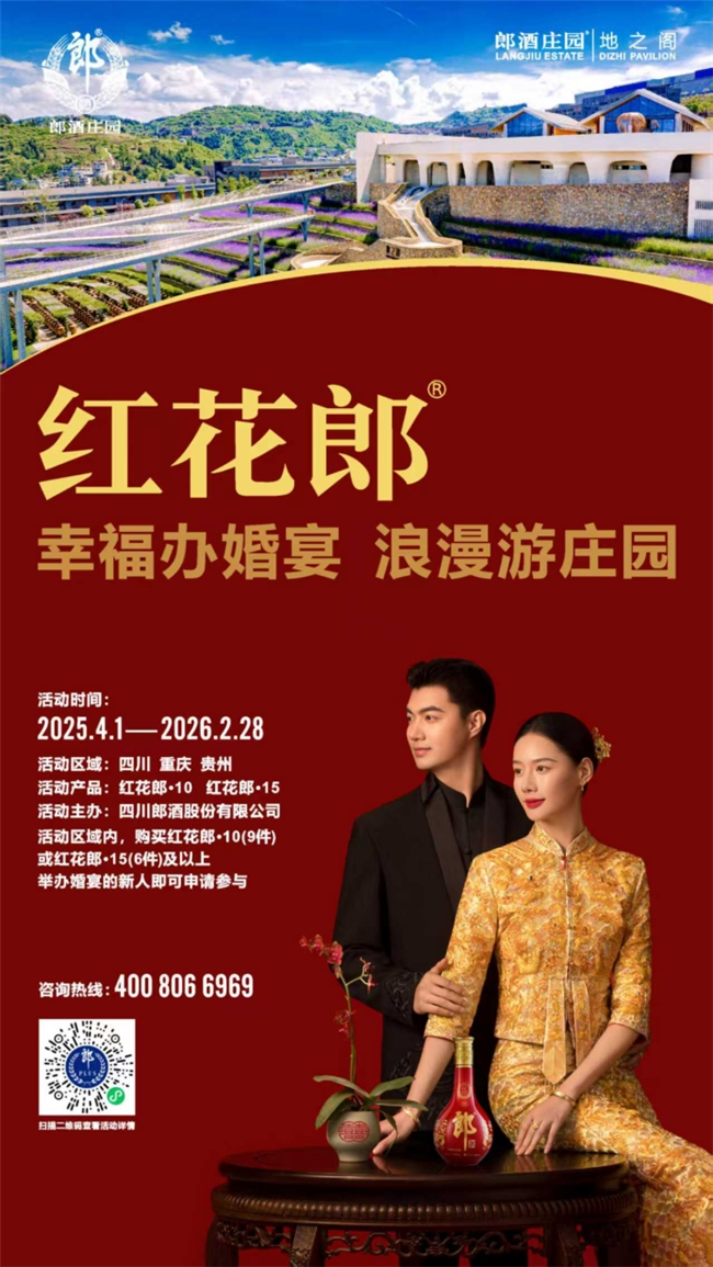 首先,活动将消费门槛精准设定为:单次婚宴购买红花郎·10(9件)或红花郎·15(6件),这相当于锁定2-3万元婚宴用酒市场。精准聚焦场景,实为对西南市场消费惯性的强势塑造——通过将庄园体验与人生大事深度绑定,红花郎正在建立“婚宴用酒=红花郎”的品类心智。