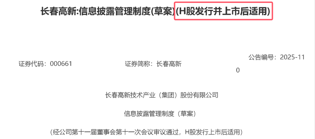 近期,长春高新的相关公告里,很多都加上了“H股发行并上市后适用”的字样。