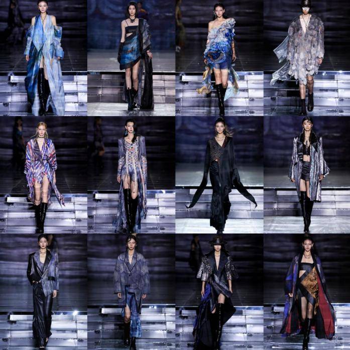 整场大秀分为“混沌”“碰撞”“未来”三大篇章,讲述拓跋氏在拓展疆域的同时不断推进胡汉融合的游牧、解域历程,与此同时所带来的如云冈造像风格变迁的艺术游牧、花木兰的性别游牧等多重游牧形式,以3D打印科技展现北魏莲瓣卷云纹的抽象模型、将传统苏绣与斑驳肌理皮革碰撞出人文与自然交融的火花,以流云变体的独家花型展现魏碑狂野而洒逸的笔锋…王紫菲将传统与当代融合,探索属于北魏的独家叙事以及未来启示意义。