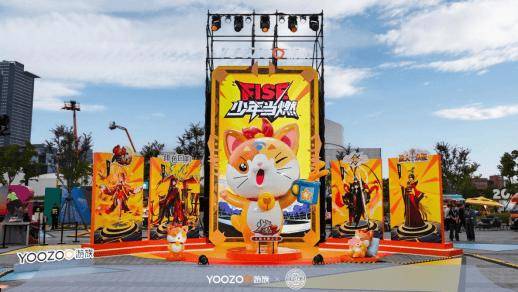 本次与FISE再度合作,游族网络不仅在各大比赛现场助力呈现精彩赛事,还在西岸穹顶艺术中心北广场设置了主题展台,为观众带来丰富的线下打卡、互动体验。旗下多款游戏人气角色跨越时空、聚首现场,共同诠释“少年当燃”主题,通过数字IP的实体化呈现,打破次元壁垒,为年轻用户打造可感知、可互动的沉浸式文化体验。其中高达5米的《少年三国志2》人气吉祥物“吕布喵”穿越时空降临赛场,吸引大量观众驻足合影,成为现场最具人气的互动区域之一。