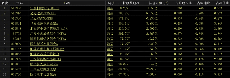 业绩持续增长,让思源电气也获得了机构的巨大青睐。截至三季度末,机构持仓占思源电气流通股比例高达近40%,华泰柏瑞、易方达、华夏、汇添富、广发、国泰、鹏华等头部基金位居机构持股数前列。