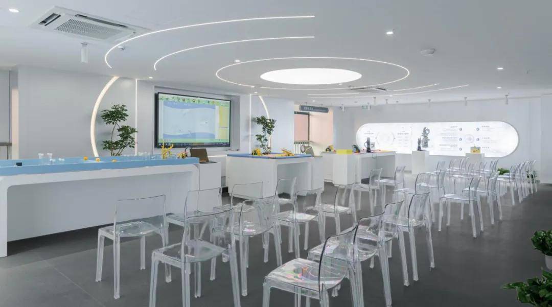 中心占地约2000平方米,共分1楼和4楼两层布局,1楼集中展示、销售以非侵入式脑机接口技术为核心的智能产品,涵盖仿生体验区、脑控体验区、脑机仰憩体验区、脑机赛事体验区、脑机康教展示区、脑机舒压展示区及脑机前沿展示区;4层则为深度研学体验区,系统展现脑机技术在教育、健康、康复等领域的多维应用场景,并设有高校实训室、心理评估室、赛事实训区、科创教室、智慧康养室及儿童康复室等功能模块,提供从科普体验到深度实训的全链条服务。