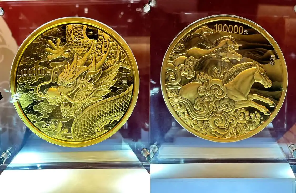 值得一提的是,本次在成都博物馆还特别展出了生肖龙年和生肖马年两枚10公斤金币,成为展览一大亮点。
