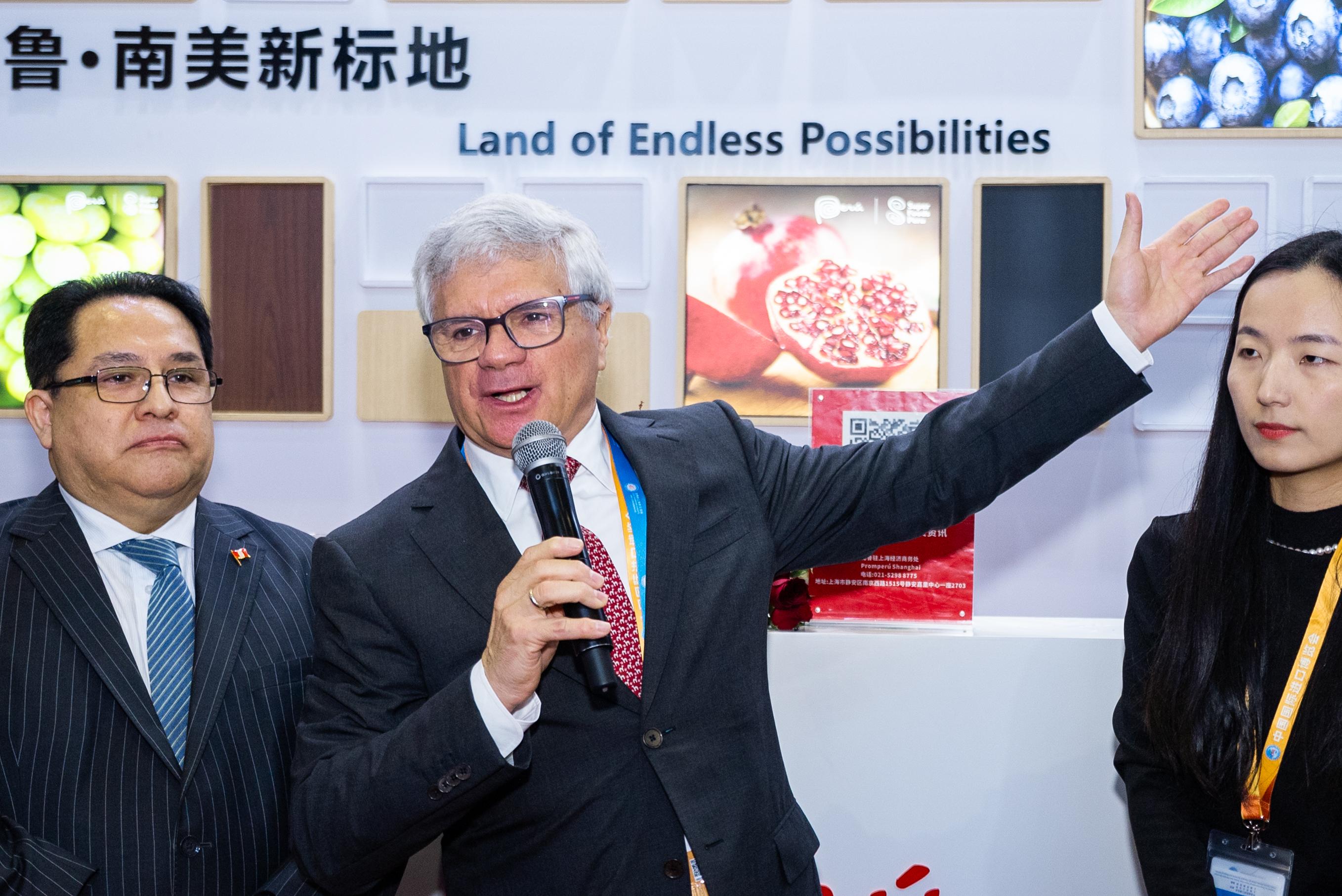 秘鲁驻上海总领事馆商务参赞贝纳多·木诺也强调,钱凯港的运营优化了秘鲁农产品和矿产的出口路径,让更多秘鲁精品如藜麦和蓝莓更快抵达中国市场。“这不仅仅是贸易通道,更是文化和友谊的桥梁。我们期待通过进博会这样的平台,让更多中国消费者品尝到秘鲁的独特风味。”