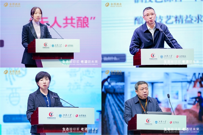 现场,中国食品发酵工业研究院、四川大学、贵州大学、天津科技大学等高校、科研机构的专家,以及茅台、五粮液、汾酒、泸州老窖、洋河、古井贡等酒企的代表,共同围绕生态酿造体系构建、白酒风味与品质、酿酒微生物研究、新质生产力下的可持续发展之路等行业共性议题,开展深入交流与报告分享。